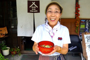 건축 240년 이상의 고민가에서 농촌 민박과 된장 만들기를 시작해 다양한 체험을 실시하고 있는 것이, 후미짱의 맛 국물 가게의 고토 토미코씨.